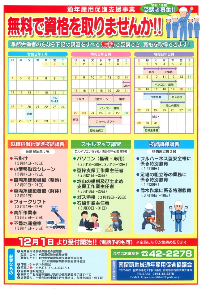 南留萌地域通年雇用促進協議会は、季節労働者の通年雇用化を目指し、サポートします。